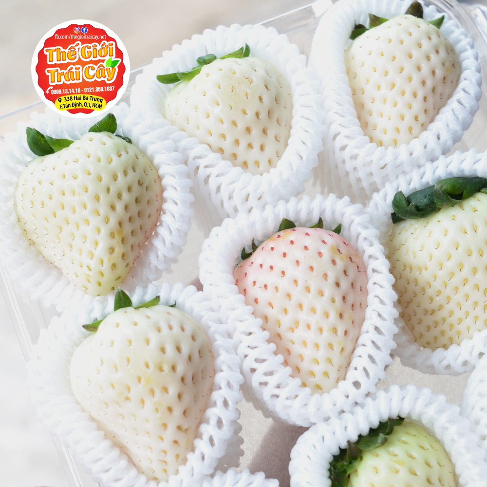 - Dâu Bạch tuyết 330gr tại Thế giới trái cây: quả dâu với màu trắng lạ mắt mang hơi hướng sang trọng rất thích hợp cho việc làm quà tặng, hàng chính nghạch, trái to, ăn ngọt không chua kèm mùi thơm nồng nàn .