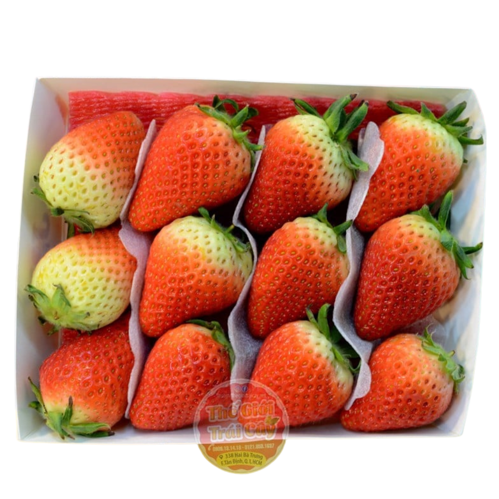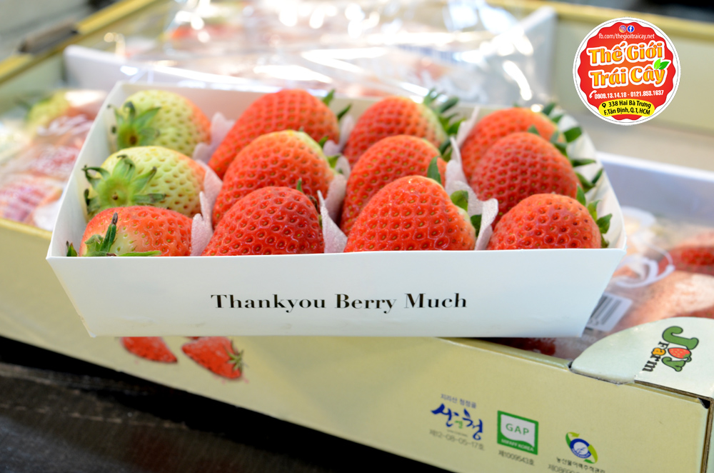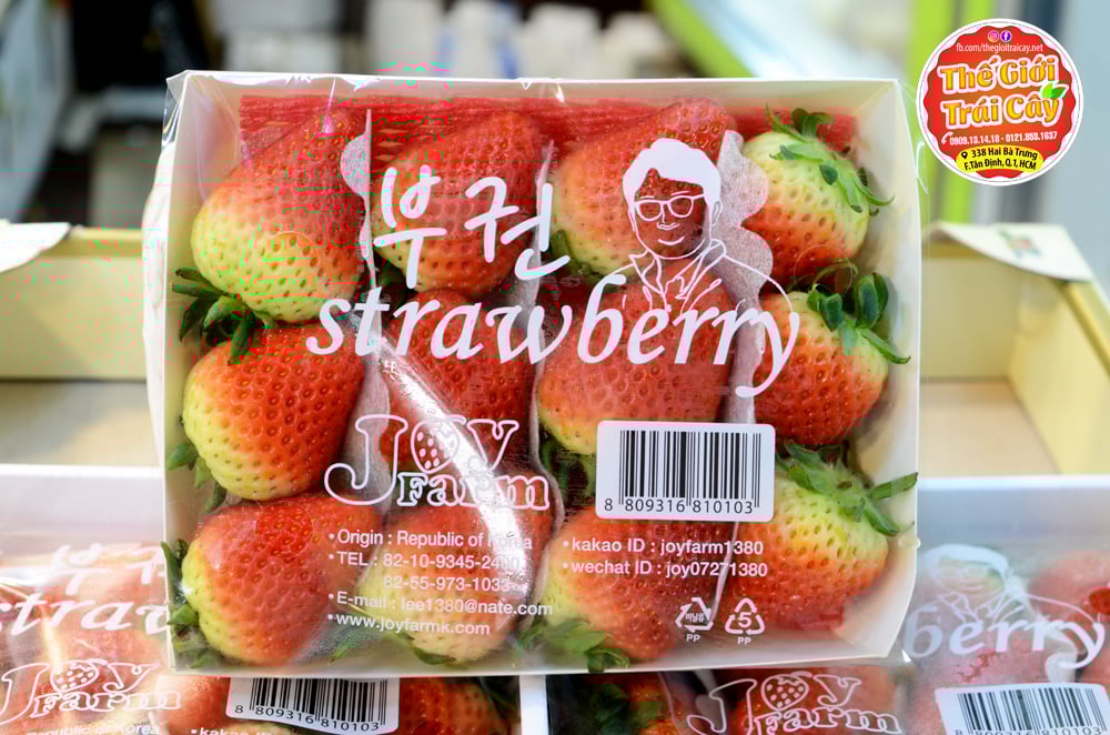- Dâu Hàn quốc JoyFarm 330gr tại Thế giới trái cây được chọn lựa từ những nhà cung cấp uy tín với tiêu chí: hàng chính nghạch, trái rất to, ăn ngọt không chua kèm mùi thơm nồng,hộp 1 lớp 12 quả, dâu mới cuống xanh ăn giòn và dần chuyển sang màu đỏ tươi lúc này vị ngọt và vị thơm khách ăn sẽ cảm nhận được nhiều hơn. Giá ưu đãi cực tốt tiết kiệm lên đến 10-25% so với giá bán lẻ dành cho khách mua nguyên thùng 4 hộp đặc biệt là khách sỉ vui lòng liên hệ Hotline 0909.13.14.18 (Zalo 24/24)