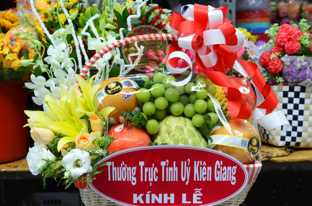 - Giỏ quà trái cây kết hợp hoa tươi đa sắc màu đẹp mắt là sự lựa chọn của đại đa phần khách hàng cần sự tiện lợi đa công dụng vừa có thể tặng hoặc thăm bệnh và cả đi cúng (đám giỗ, kính lễ, đám tang, ra mắt v.v...)