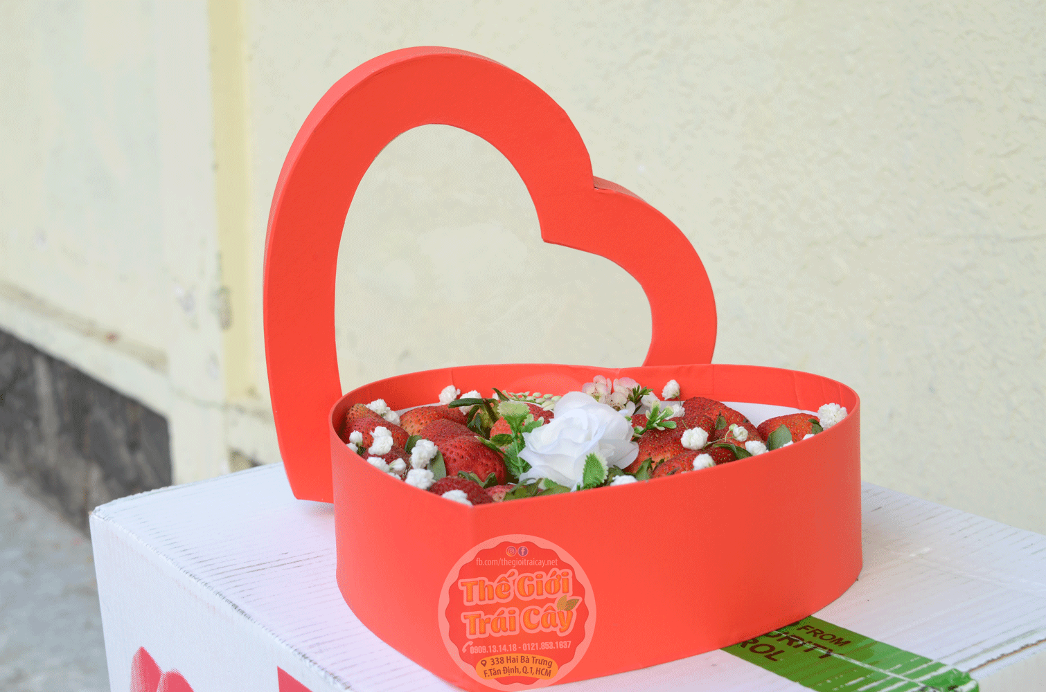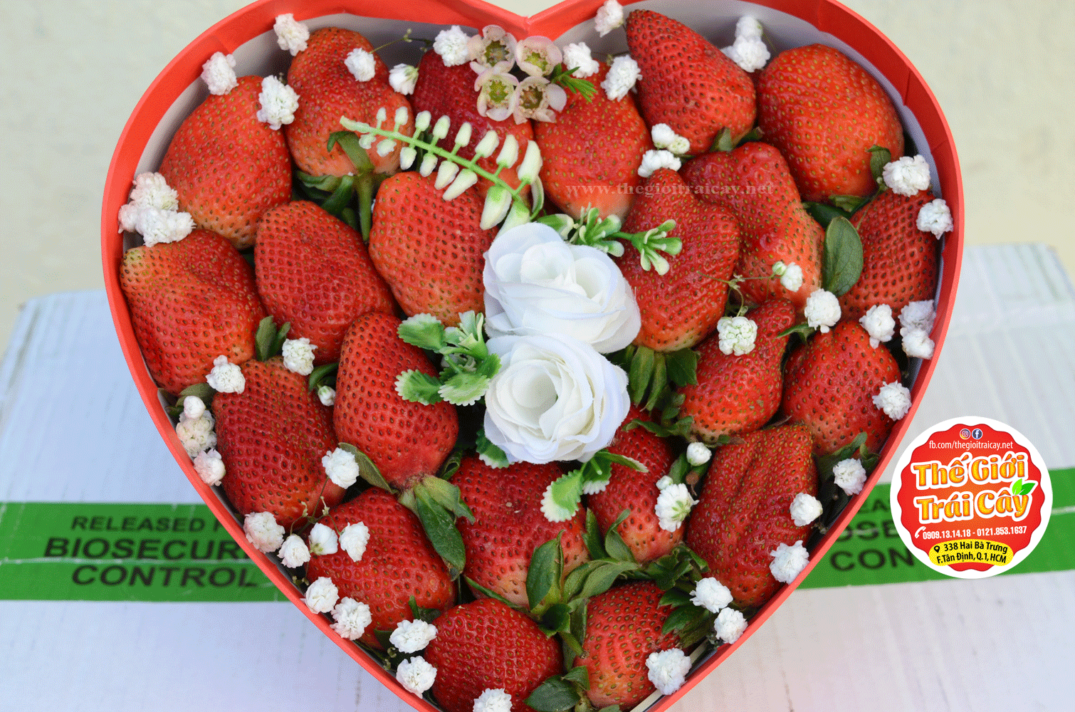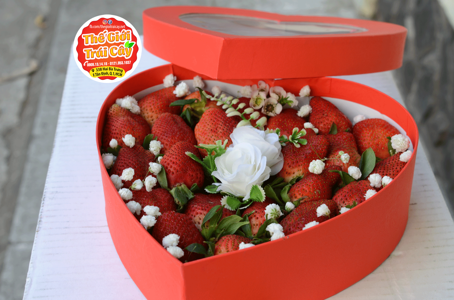 - Hộp Dâu tây Montery Mỹ tại Thế giới trái cây: dùng làm quà tặng rất đẹp và ý nghĩa, quả to cuống xanh tán rộng, dâu có độ giòn nhất định khi còn mới vớ vị ngọt chiếm 80% kèm (muối Ô mai chua ngọt).