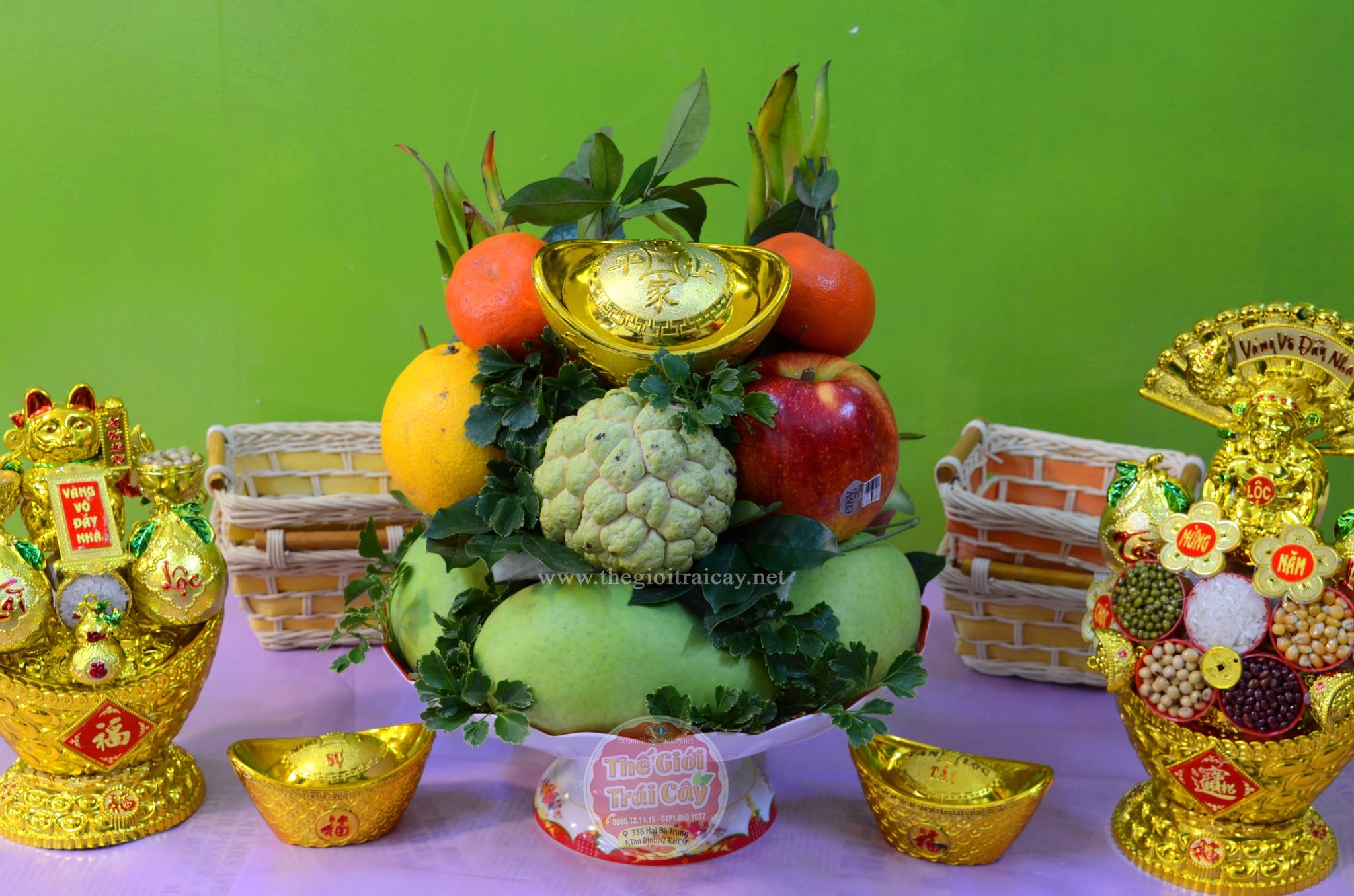 - Khách hàng có thể mix một dĩa hoặc một mâm ngũ quả đẹp để đưa ông Táo (23 âm lịch) hoặc cúng giao thừa đêm 30 cũng như chuẩn bị cho việc khai trương đầu năm mới với nhiều sự lựa chọn tuỳ vào nhu cầu khác nhau như ở nhà riêng, công ty, trường học, công trình, nhà hàng khách sạn v.v.... thông qua Hotline 0909131418 - 0798531637.