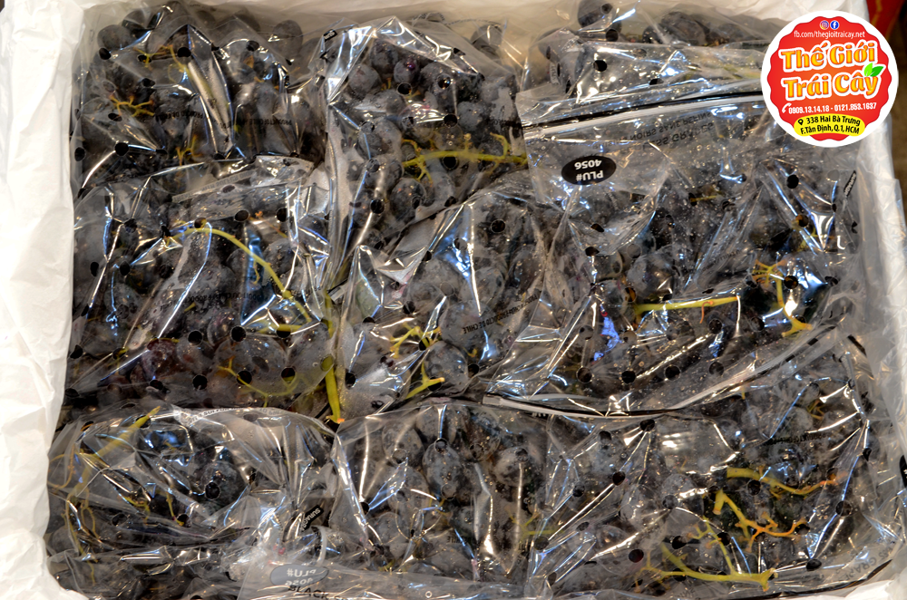 - Nho đen không hạt Chile tại Thế giới trái cây: hàng theo chùm, trái to, giòn và ngọt đậm đà không bị gắt cổ, đặc biệt không chát vỏ.