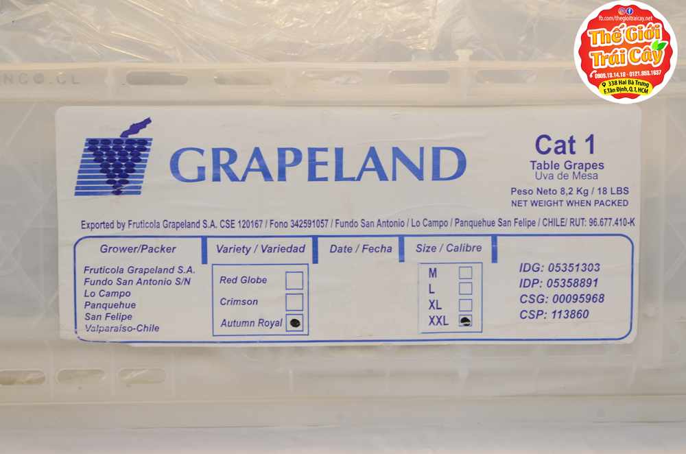 - Mua Nho đen Chile size XXL ở đâu: Nếu như bạn chưa biết hay còn phân vân về việc chọn một cửa hàng trái cây sạch cao cấp để chọn mua Nho đen không hạt Chile size XXL hay các loại trái cây cao cấp khác của Việt nam cũng như Nhập khẩu thì đến ngay Thế giới trái cây tại trung tâm Quận 1 để chọn cho mình sản phẩm tốt nhất về giá cũng như an tâm về chất lượng xuất xứ nguồn gốc.