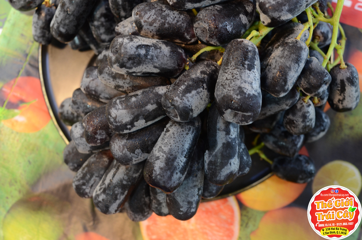 - Nho ngón tay không hạt Royalty Mỹ :còn có tên gọi khác là Nho phù thuỷ với hình dạng đặc biệt thuôn dài như ngón tay, ăn giòn vị ngọt xen ít chua nhẹ tuỳ thời điểm và mùa vụ cũng như xuất xứ. Ngoài việc ăn tươi quả Nho còn dùng trong việc trang trí, làm các loại mứt, rau câu hoặc rượu Nho.