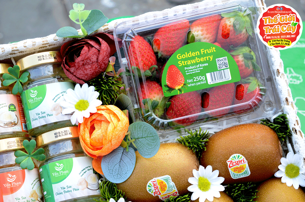 Set quà Tết Yến Sào mix trái cây mã số YS2023 gồm Yến sào, Dâu hàn quốc và Kiwi vàng bạn nhé